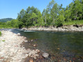 さて、どうしよう。ここに来る途中のニセイパオマナイ川は割と濁りが少なかったので、行ってみることにする。まだ、道東道が繋がっていないとき、夕張から占冠に向かう途中、いつも気にはなっていたのだ。でも、こんな道路沿いの川だしなぁ。車を停められそうなスペースを見つけ、そこから川に下っていく。道路から見た感じでは、結構良さげに見えるのだが。